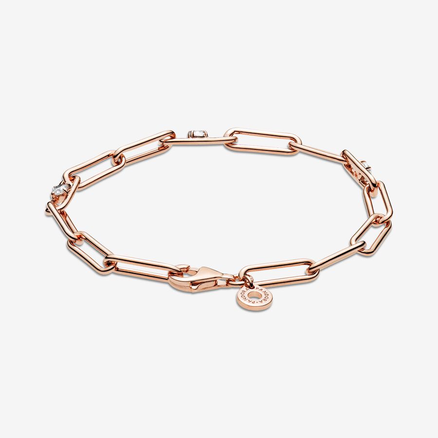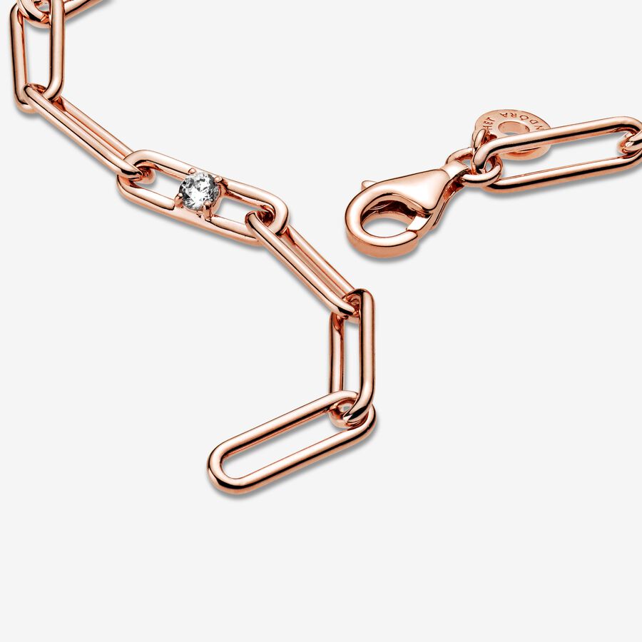 For a touch of sophistication, look to the Link Chain & Stones Bracelet. This classic, chunky design is hand-finished in 14k rose gold-plated unique metal blend. Featuring clear cubic zirconia on three of the bracelet’s links for added sparkle, this wrist piece includes a dangling tag on the closure link. Wear with other link chain styles for an elegant look with an edge.