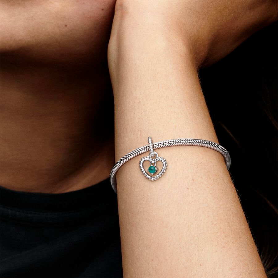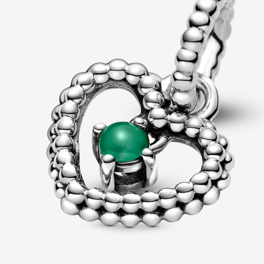 The color of the ocean after a storm or a road trip in Costa Rica? All that you are and all you love, captured in color. Inspired by the beaded designs of Purely Pandora, this heart-shaped dangle is hand-finished in sterling silver and features a claw-set buff top-cut rain forest green man-made crystal in the center. Wear it on Pandora bracelets or necklaces to define and redefine your style by choosing colors that express who you are.