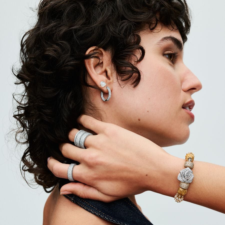 Crafted in sterling silver, the Yellow Rose in Bloom Charm represents the beauty of flowers in bloom. Its symbolic design showcases a blooming rose, adorned with hand-applied transparent glittery yellow enamel. The layered petals create a three-dimensional effect, revealing sterling silver beneath the outer enamel. Inspired by the symbolism of yellow roses—representing joy, friendships, and new beginnings—this piece is a tangible expression of love. Gift a piece of everlasting beauty and heartfelt emotion with this intricately detailed Pandora Moments charm.